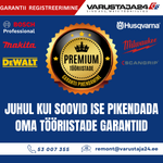 Varustaja24 erbjuder en betaltjänst för garantiregistrering för att hjälpa stamkunder att säkerställa verktygens garantiskydd och hålla verktygsparken i ordning. Om så önskas kan varje användare dock registrera garantin själv och hantera sina verktygs garantitider direkt på tillverkarnas webbplatser.